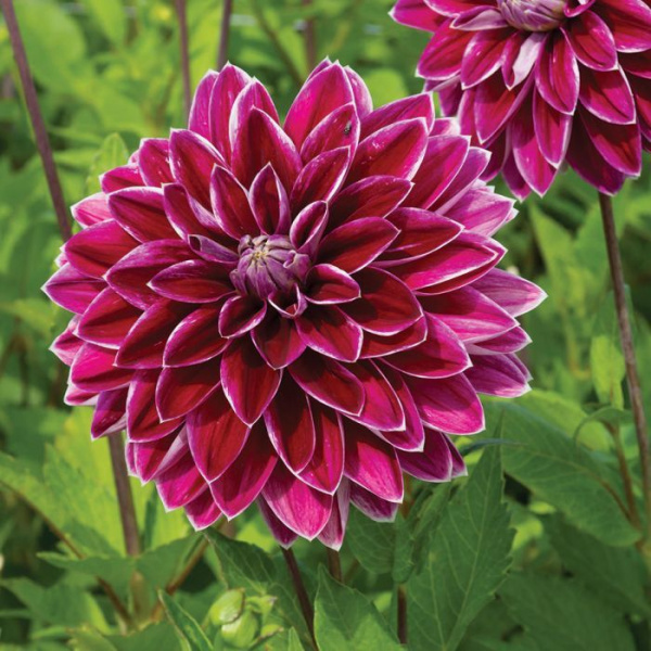 Георгин Пурпл Перл – это декоративное растение из семейства сложноцветных, которое радует глаз своими насыщенными бордовыми цветами с бархатистой текстурой и тонкой белой окантовкой. Растение формирует крепкий куст с прямыми стеблями и густой листвой. На каждом побеге образуется до трех цветков, которые начинают цвести с середины июля и продолжают радовать до конца сентября. Георгин Пурпл Перл предпочитает солнечные места, защищенные от сквозняков и с низким уровнем грунтовых вод. Это растение не переносит морозов.