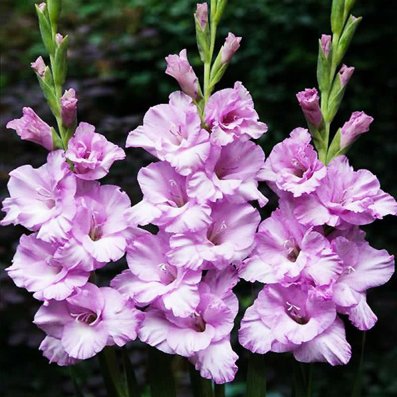 Луковица гладиолуса Альфа (Alpha) представляет собой идеальный выбор для садоводов, предпочитающих выращивать цветы с нежными и спокойными оттенками. Этот крупноцветковый гладиолус радует глаз сиреневыми цветами, которые постепенно переходят в белую окраску.