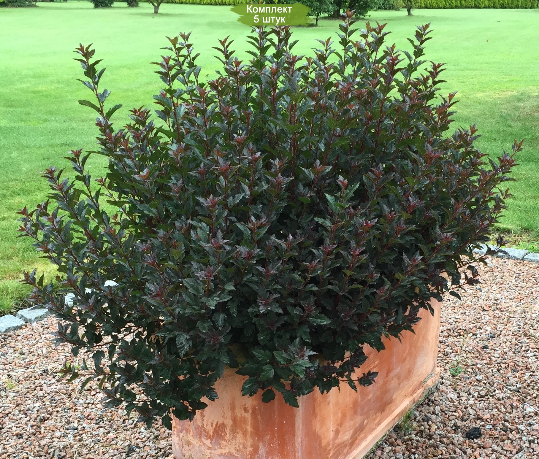 Саженцы пузыреплодника калинолистного сорта Литл Девил (Little Devil) - 5 штук. Специальное предложение: комплект из 5 саженцев по цене 4! Кусты пузыреплодника Литл Девил с темно-бордовыми листьями станут ярким акцентом в любом саду, создавая эффектные контрастные композиции. Этот сорт отличается высокой устойчивостью и неприхотливостью в уходе.